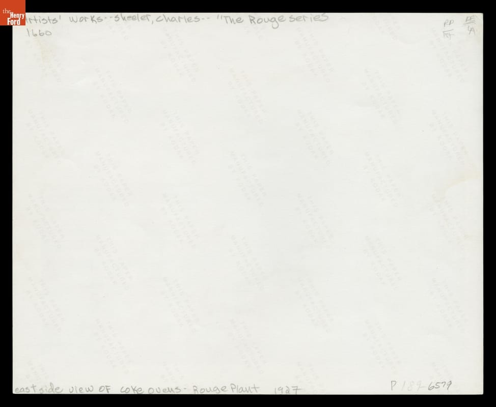 The artist's visit to River Rouge was an outstanding experience which introduced him to a subject he used throughout his career. American industry became the focus of his art for the next thirty years. Sheeler photographed the Rouge for about six weeks, from late October until the end of November, just before the unveiling of the new Ford Model A automobile on December 2, 1927.