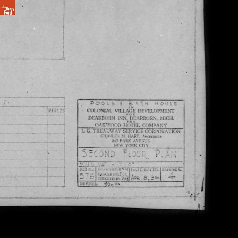 By the mid-1930s, the Dearborn Inn, a popular luxury hotel, required additional accommodations to service travelers and visitors to the Edison Institute (later renamed The Henry Ford). The L.G. Treadway Service Corporation consulted with Edsel Ford about proposed upgrades that included a swimming pool, pool house, landscaping, and a "Colonial Village" of guest houses (replicas of homes famous in American history).