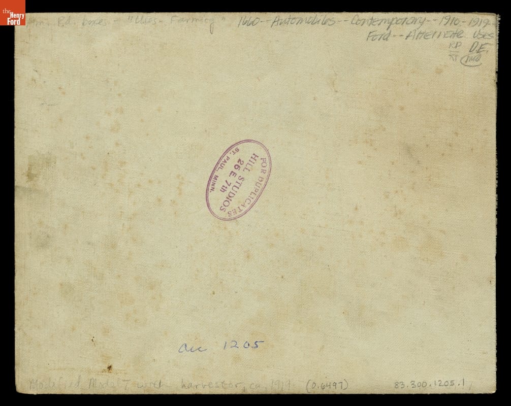 Around 1919 a farmer driving his converted Model T Runabout is pulling a McCormick-Deering reaper to harvest grain in Minnesota. Large-diameter steel-drive wheels and a rear power takeoff were all that was needed to achieve the conversion. For only $195, E.G. Staude Company of St. Paul, Minnesota, had started selling the Mak-a-Tractor conversion kit for the Model T in 1917, capitalizing on the popularity of the Ford car among farmers. Staude produced an estimated 20,000 to 30,000 of these in its lifetime.