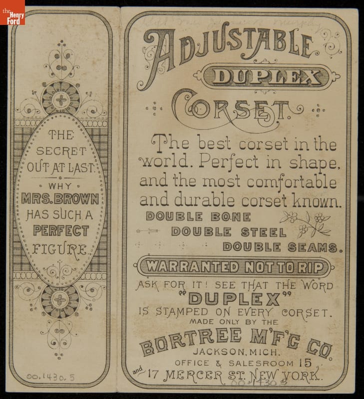 Trade Card for Duplex Corsets, Bortree Manufacturing Co., circa 1885