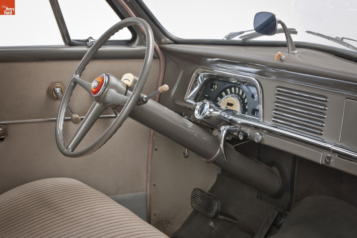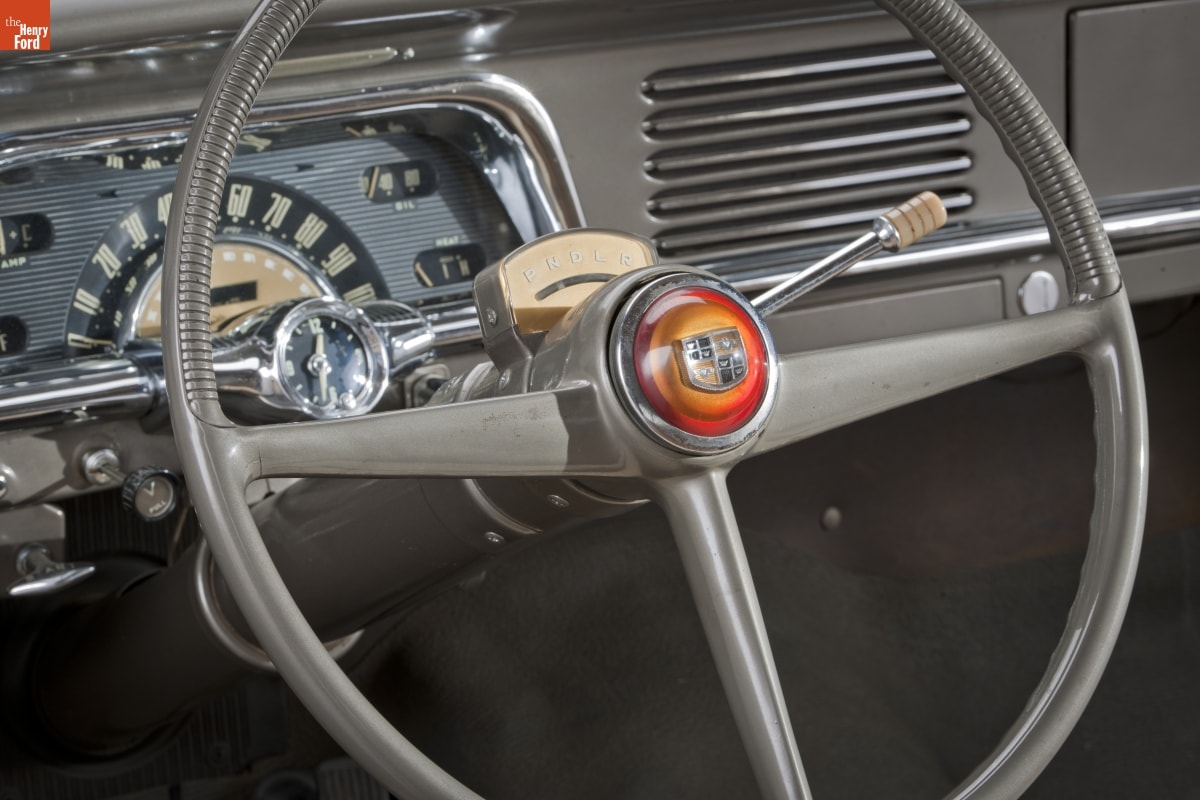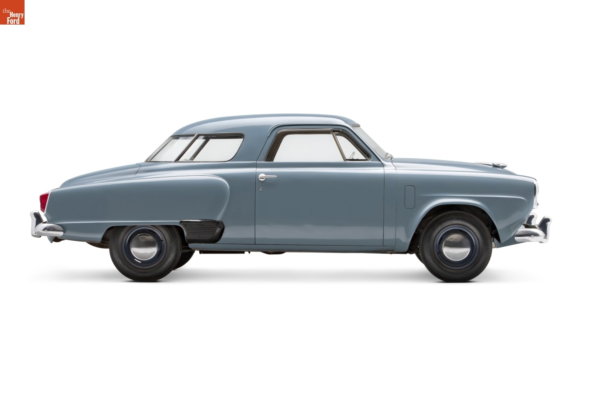 By the 1950s, Americans expected to have cars and travel widely. Even people of average income wanted their cars to reflect their personalities. If you wanted to turn heads, then Studebaker was the brand for you. Studebaker competed for customers with Ford, Chevy, and Plymouth, using airplane-inspired styling and radical wraparound rear windows. This model seems to leap forward even when standing still.