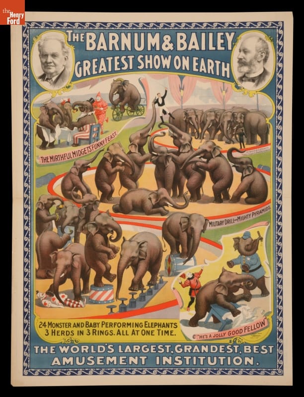 Circus Poster, Barnum and Bailey Circus Presents "24 Monster and Baby Performing Elephants," 1896