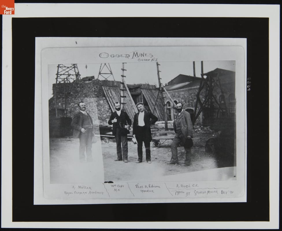 Alfred Muller, William Kent, Thomas Edison and A. Ruce at Edison's Ore-Concentrating Works, October 1891