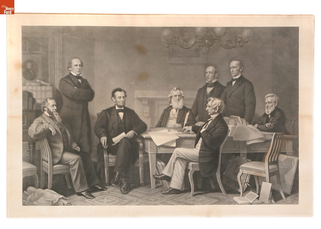 Engraving, "The First Reading of the Emancipation Proclamation Before the Cabinet" 1866