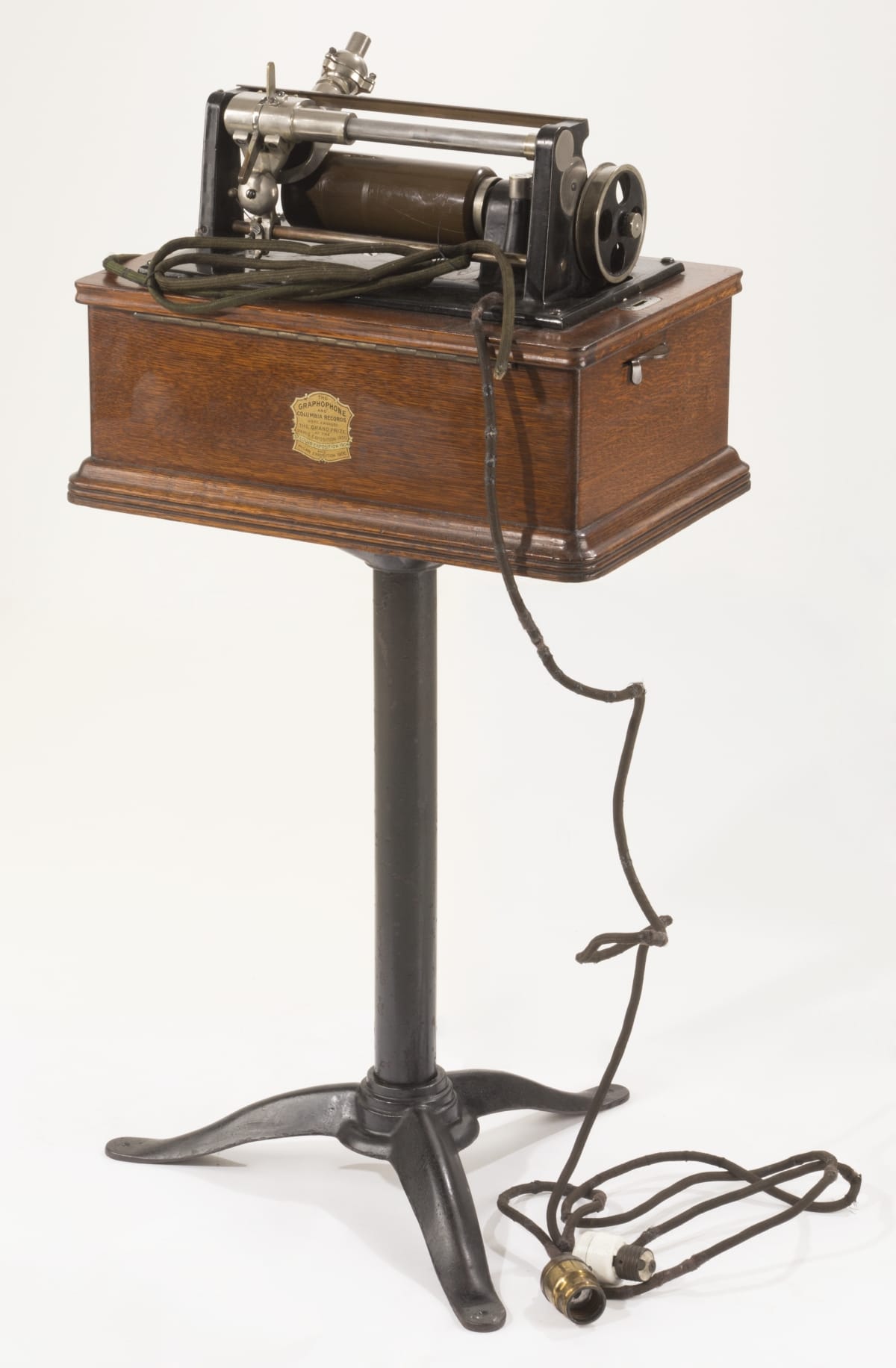 label, front: The Commercial Graphophone Patented June 10 1890 . . . July 27 1897 Columbia Phonograph Co. label, rear: The Graphophone and Columbia Records were Awarded the Grand Prize at the Paris Exposition 1900 St. Louis Exposition 1904 Milan Exposition 1906 plaque: Dictaphone Manufactured by American Graphophone Co. for Dictaphone Company of America New York
