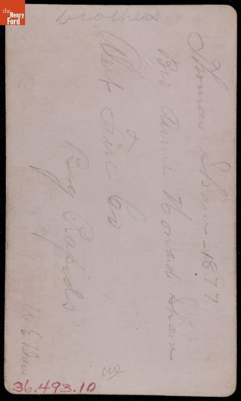 Thomas Shaw 1877 / Bro Ann Howard Shaw / Alert Fire Co / Big Rapids / W.E. Drew / brothers