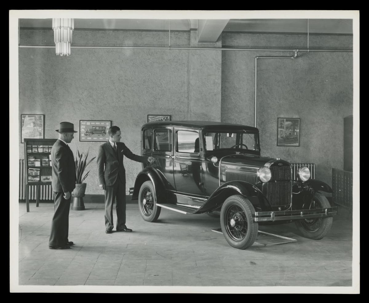Ford Motor Company inaugurated a system of competing dealership franchises in 1914. Dealers sold Ford vehicles, offered repair services, and stocked spare parts and automobile accessories. By the 1930s, many dealerships had spacious showrooms where customers could inspect the latest models. Advertisements and vehicle literature were available and a helpful salesman was always nearby.