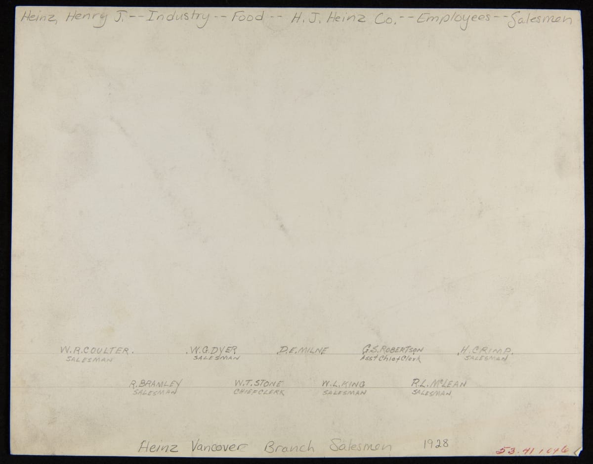 Vancouver Branch Sales Personnel, H. J. Heinz Company, Vancouver, Canada, September 1928