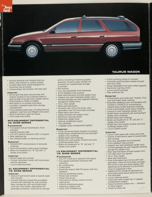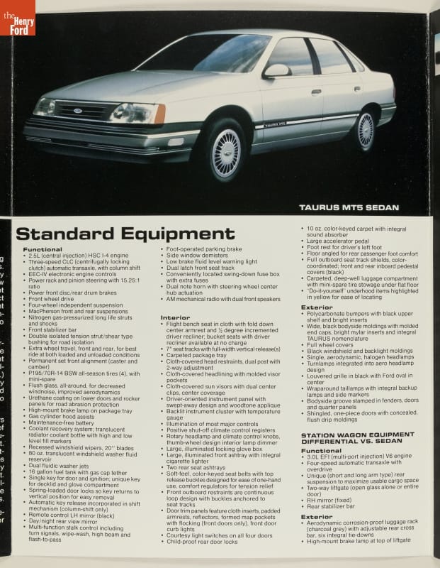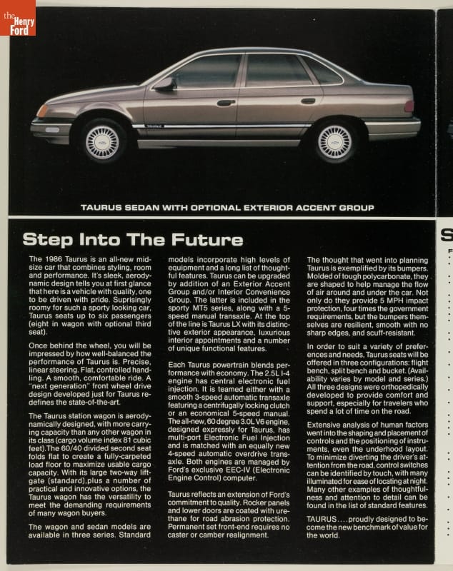 When it debuted for 1986, the Ford Taurus looked different from anything else on the road. Its exterior offered a fresh, aerodynamic appearance, while the car's interior was thoughtfully designed with ergonomic seats and controls. Ford sold more than 200,000 Taurus sedans and station wagons in the model's first year.
