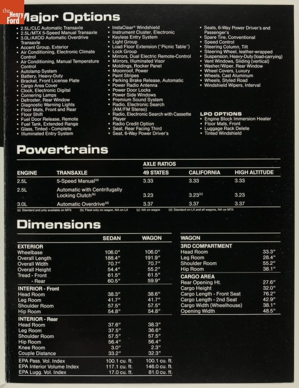 Sales Brochure for the 1986 Ford Taurus