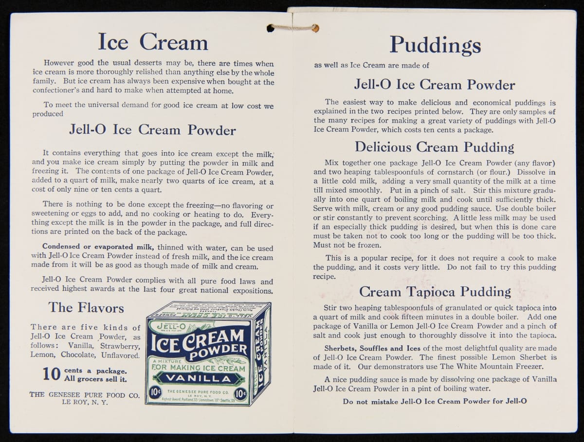 Recipe Booklet, "Jell-O Ice Cream Powder," circa 1910