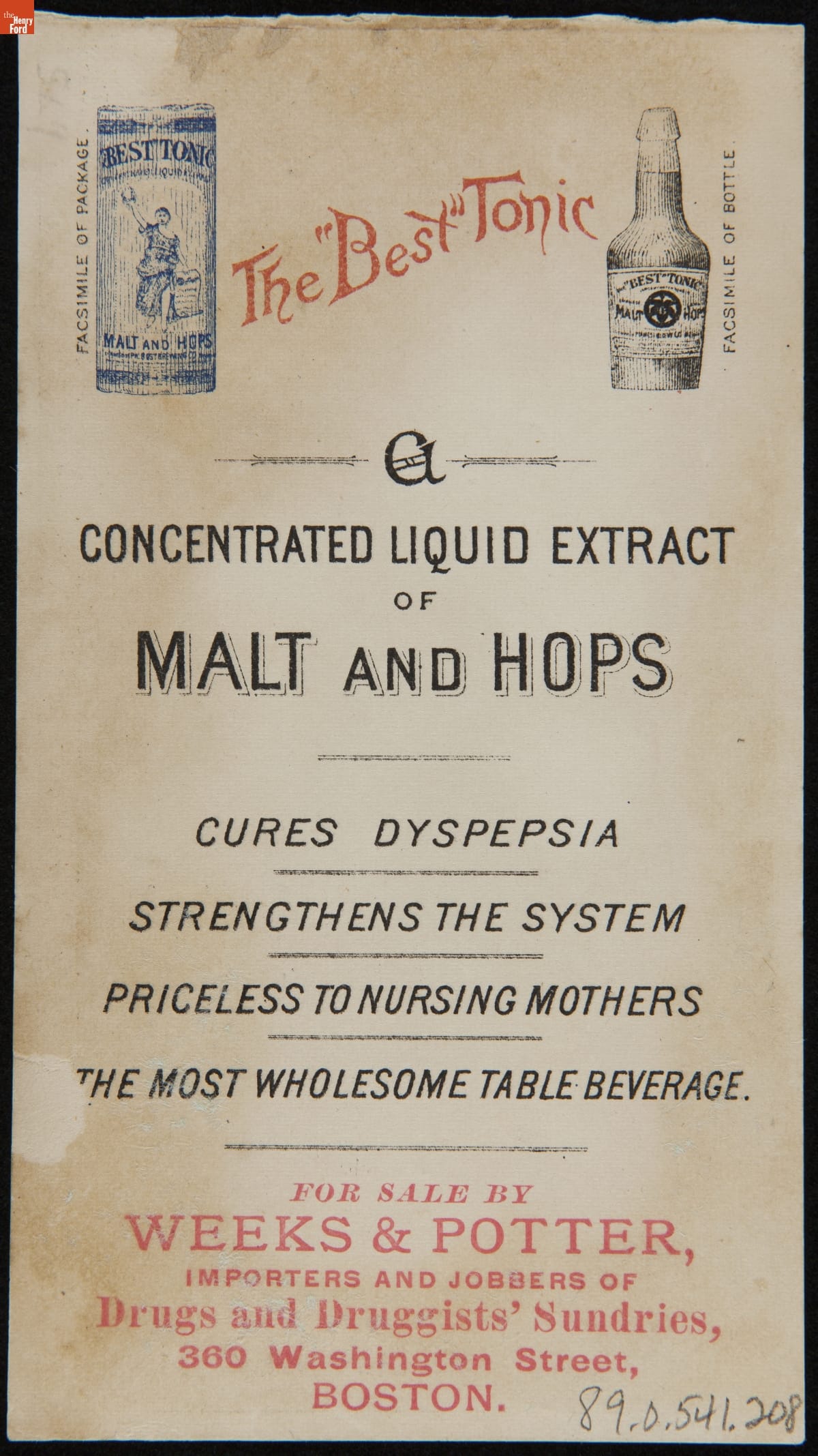 Trade Card for The "Best Tonic," 1880-1900
