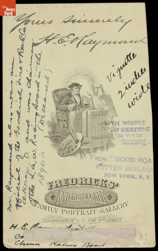 Mr. Raymond also was an / official of the Goodrich Fire & [illegible] Co. / Akron, O. and was chairman of the L.A.W. Racing Board in the 1890's (Deceased)