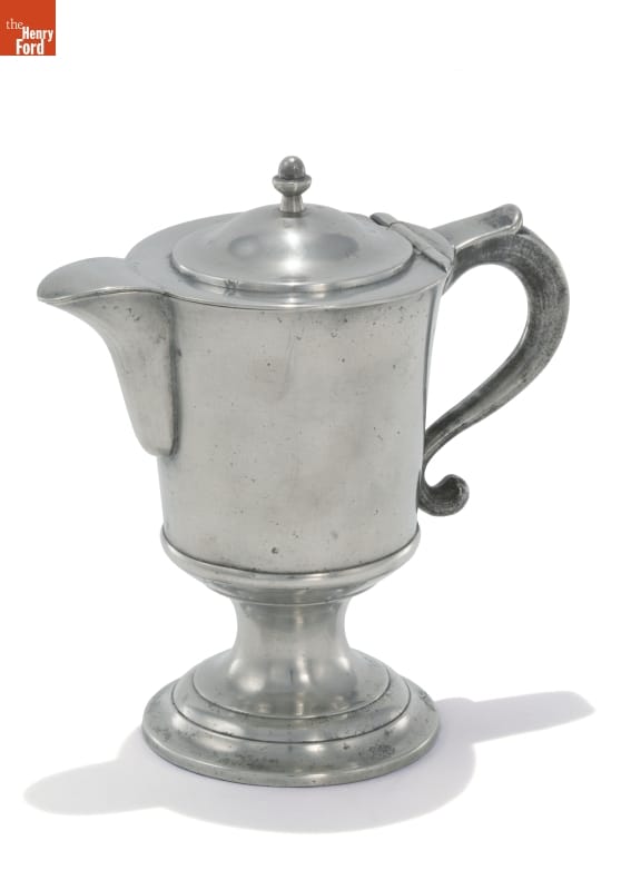 Pewter goods could be found in many American homes and public buildings in the late 18th and early 19th centuries. Most Americans of modest means could afford to have pewter spoons, tankards, dishes, plates or other items, such as this covered pitcher.