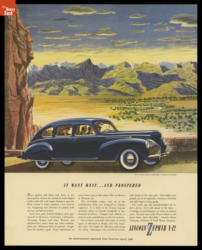 1940 Lincoln Zephyr Sedan Advertisement, "It Went West and Prospered"