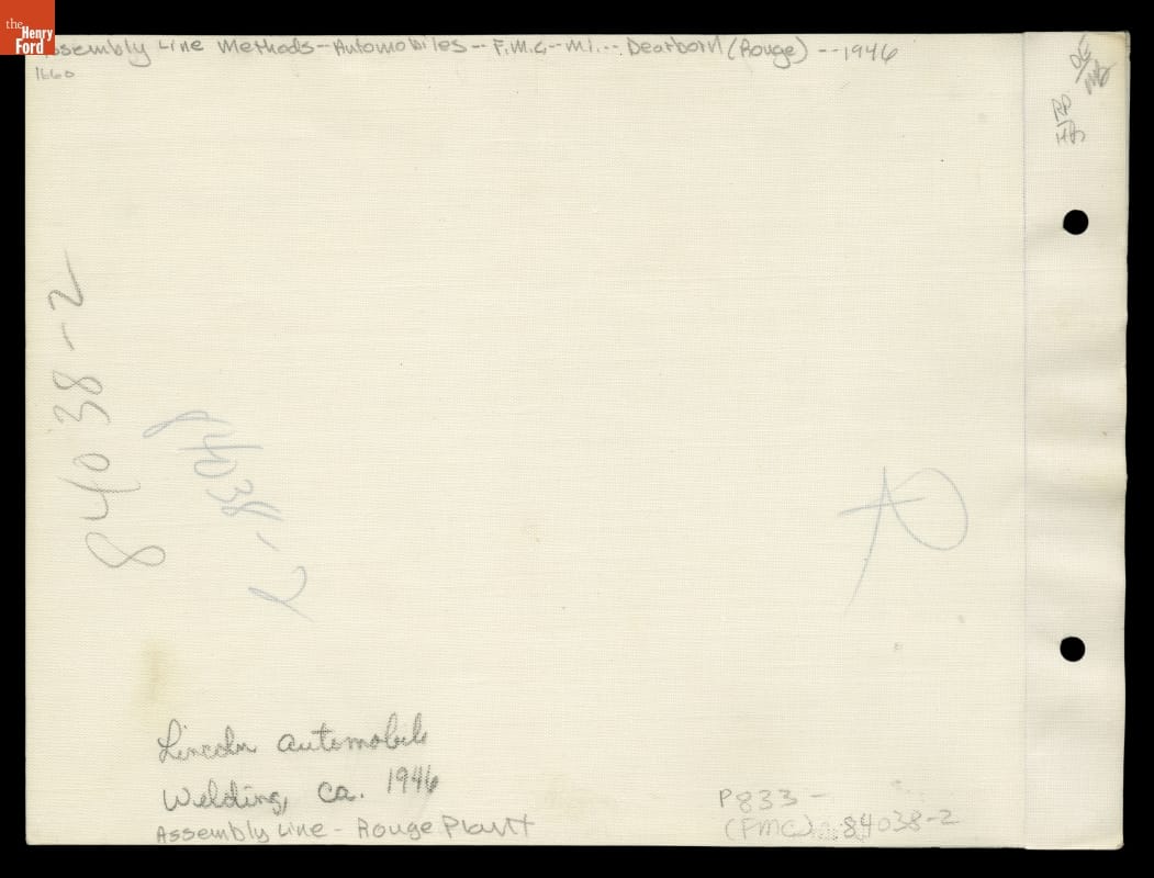 Welding on Lincoln Automobile Assembly Line, Ford Rouge Plant, 1946-1947