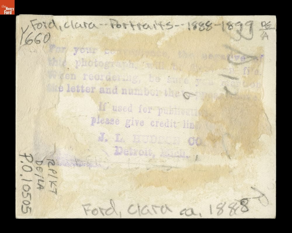 Portrait of Clara Bryant Ford, circa 1888