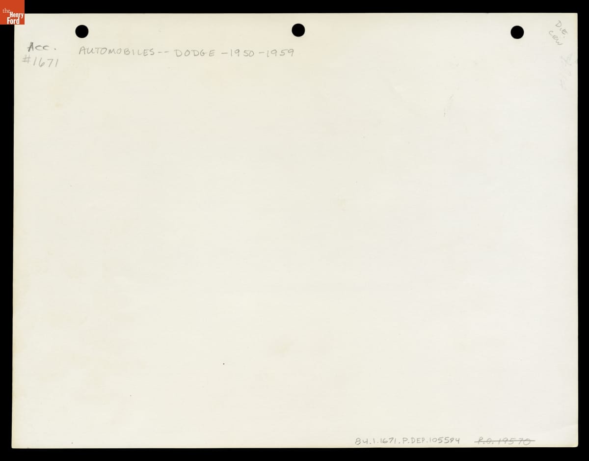 Automakers routinely purchased samples of their competitors' vehicles to evaluate features and technologies. Ford Motor Company bought this 1955 Dodge Custom Royal in part to study its two-speed PowerFlite automatic transmission, introduced the previous model year. Chrysler brands replaced the PowerFlite with the three-speed TorqueFlite automatic transmission starting in the 1957 model year.