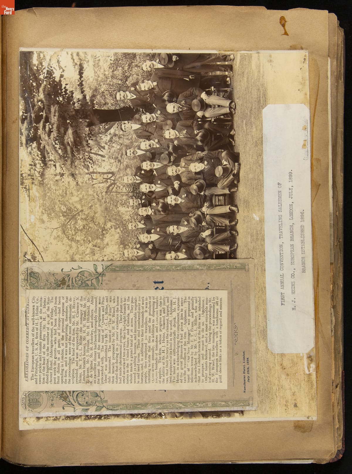 Company photograph albums are often reminders of the company's history, significant moments in time, and the employees who worked there. This album, compiled by the H.J. Heinz Company, includes photographs of Heinz factory branch buildings, employees at conventions, and several images of F. & J. Heinz, the former name of the company before H.J. Heinz became the sole owner.