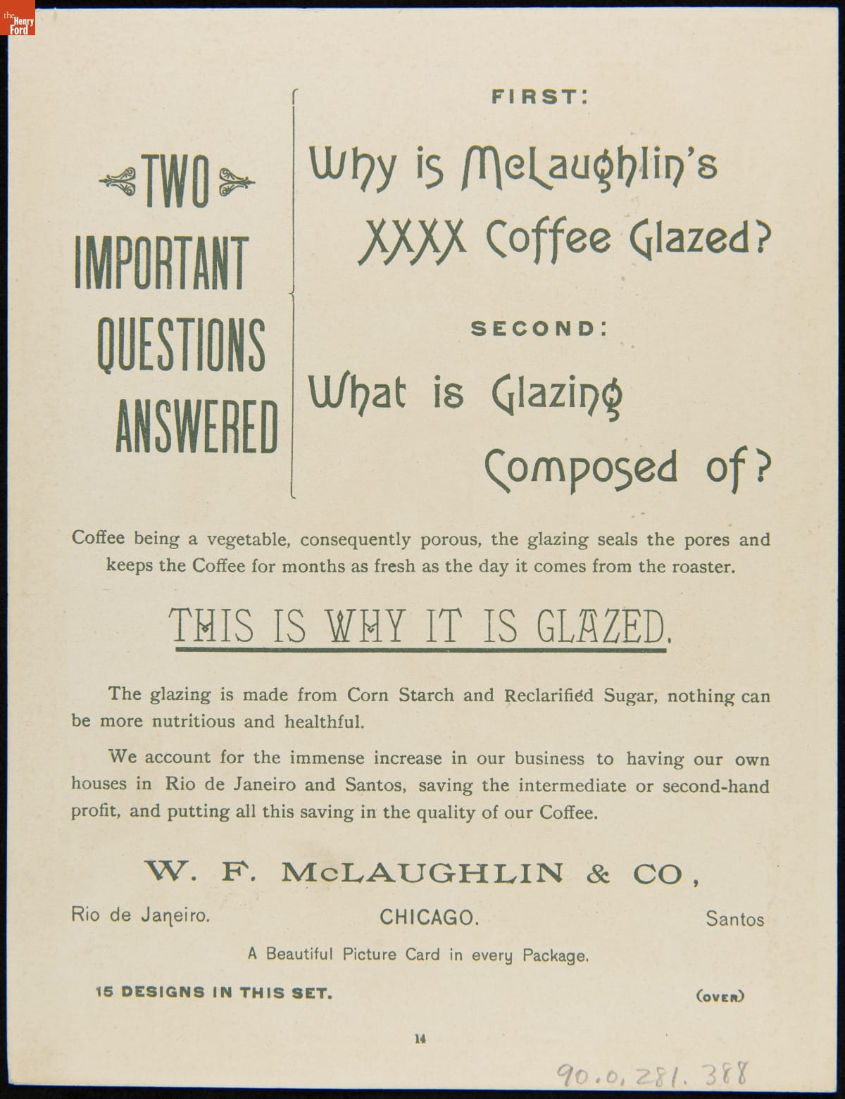 Trade Card for McLaughlin's XXXX Coffee, W.F. McLaughlin & Co., 1892