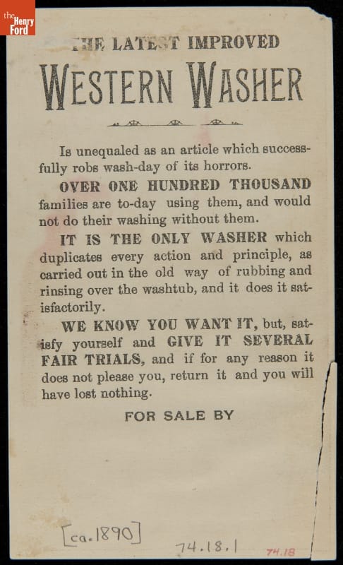 Trade Card for The Fort Wayne Improved Western Washer, Horton Manufacturing Co., circa 1886