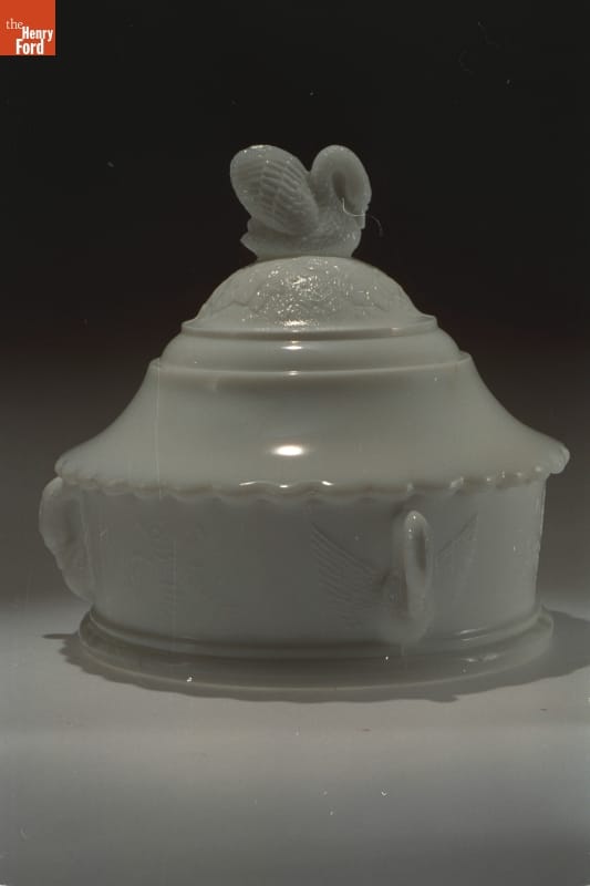 Nineteenth-century American glassmakers experimented with new methods to create products for a growing consumer market. In the 1820s, pressing glass into metal molds by machine was perfected, and by the mid-1800s, manufacturers were creating a variety of inexpensive pressed glass housewares. America's middle-class consumers could now decorate their homes with attractive glass bowls, creamers, dishes, plates, vases, and other tableware.