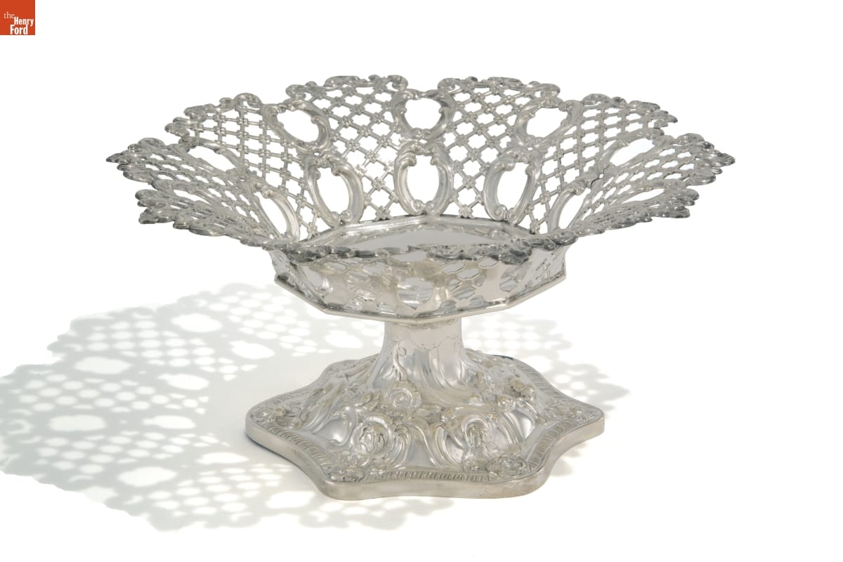 This silver compote - made in Charleston, South Carolina, by Gregg, Hayden, and Company - is an exceptional example of sophisticated southern design. Filled with luscious fruits or other small indulgences, it would have been a deluxe centerpiece in an affluent dining room in the Antebellum South.