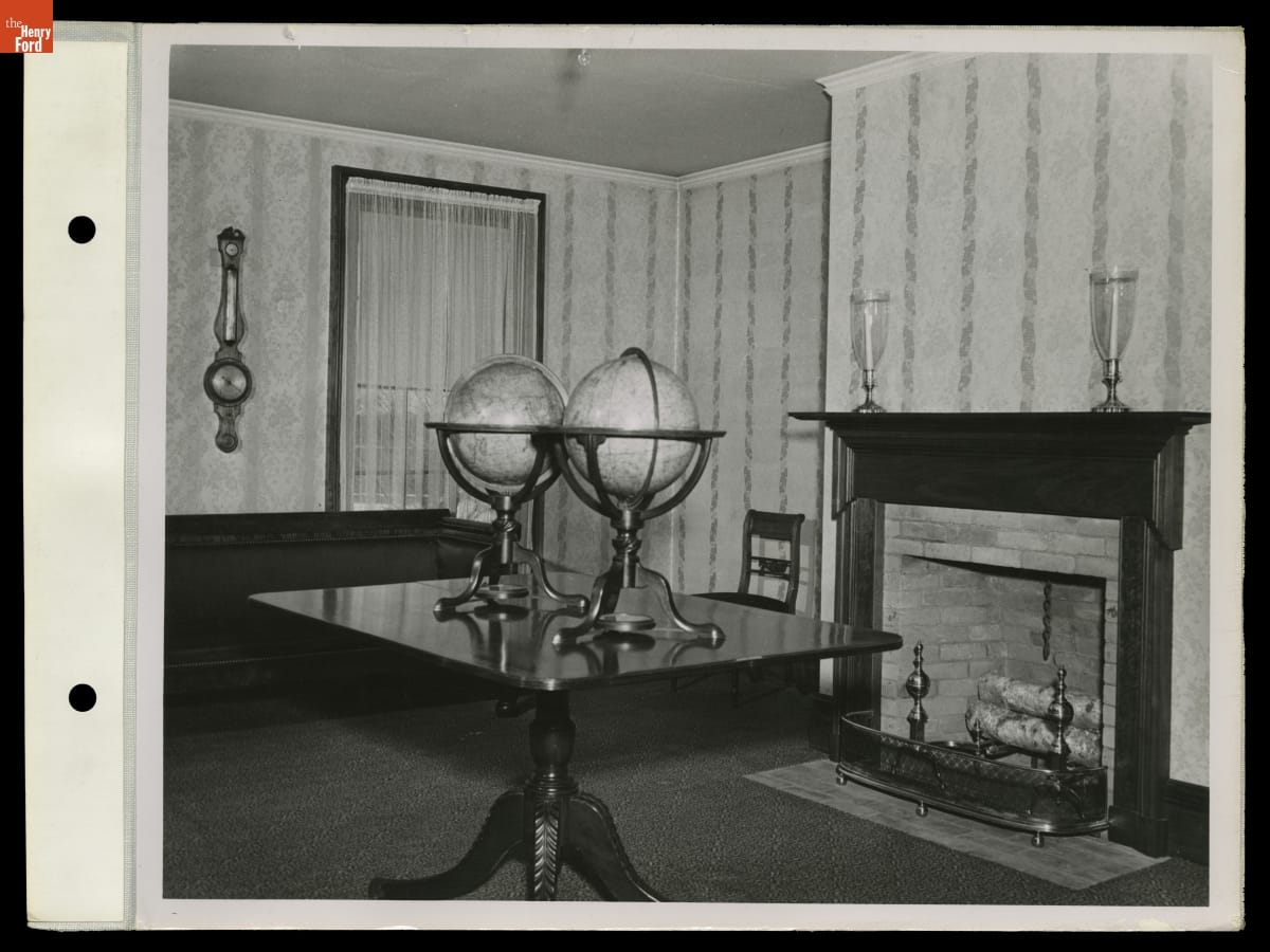 Henry Ford admired textbook pioneer and spelling reformer Noah Webster. Ford purchased Webster's New Haven, Connecticut, home and moved it to Greenfield Village in 1936 to join a growing list of historic buildings in Ford's outdoor museum in Dearborn, Michigan. This image shows the house's interior in 1947.