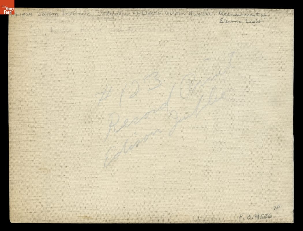 To celebrate the 50th anniversary of the incandescent electric lamp, Henry Ford hosted the Light's Golden Jubilee in Dearborn, Michigan. Ford chose the occasion to dedicate Greenfield Village to his friend, Thomas Edison. During the festivities, Edison and former assistant Francis Jehl re-enacted the first successful light bulb test (1879) in Greenfield Village's detailed reproduction of Edison's Menlo Park Laboratory.