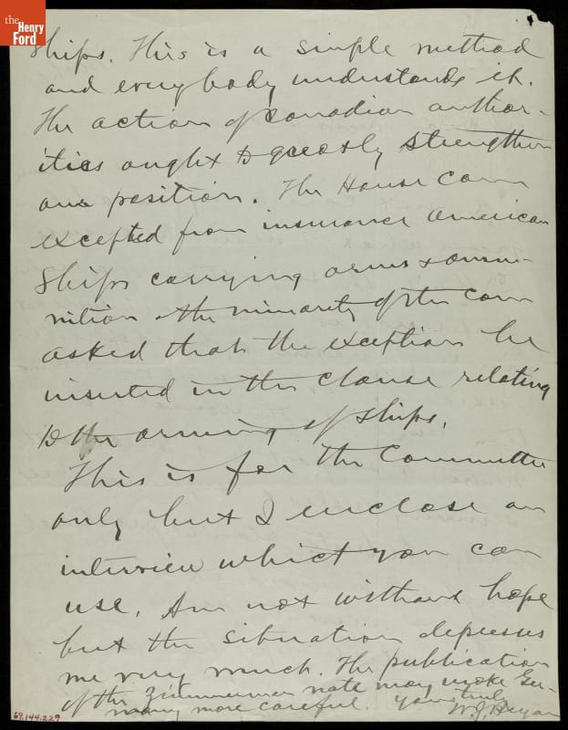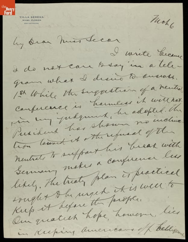 Letter from William Jennings Bryan to Lella Secor Florence, 1917