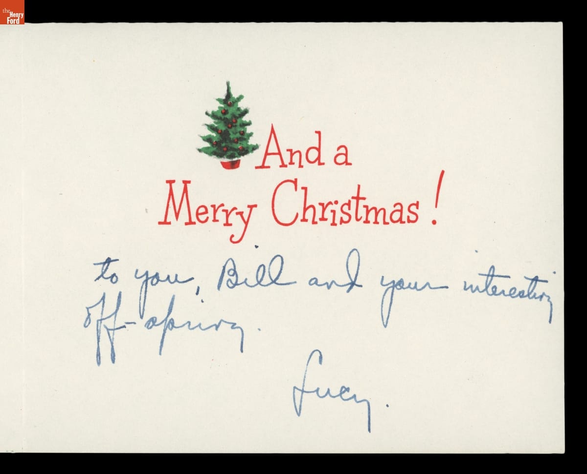 Mailing colorful Christmas cards had become an American tradition by the 1920s and 1930s and would continue throughout the century. Americans who celebrated commonly exchanged cards with family and friends, wishing one another seasonal holiday greetings. Cards from the mid-century with images of older vehicles harkened to earlier times, perhaps evoking a simpler time before the sleek, fast-paced cars of the era.