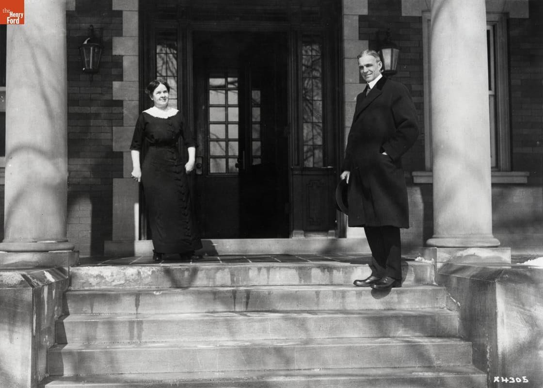 Clara and Henry Ford on the Porch of their Home on Edison Avenue, Detroit, Michigan, circa 1912