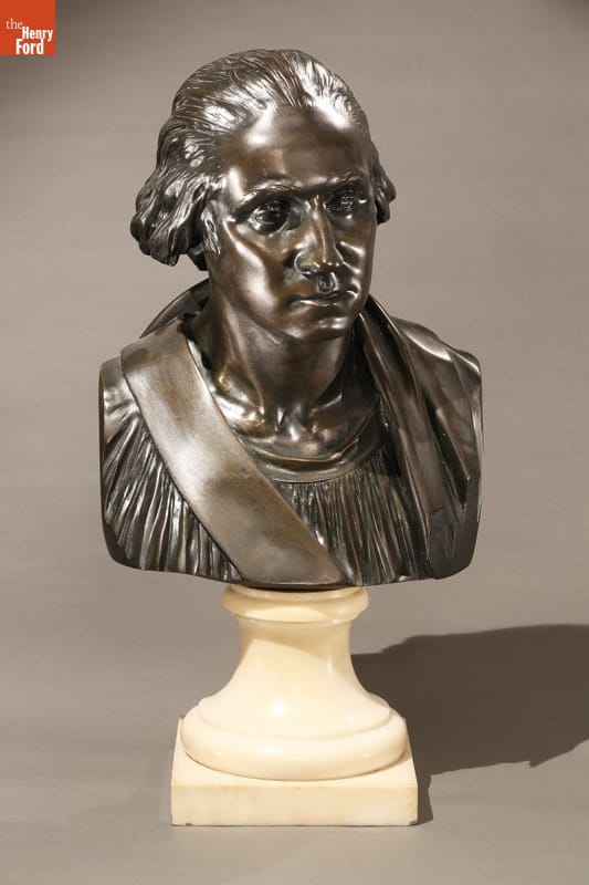 In 1785, famous French sculptor Jean Antoine Houdon visited George Washington at his Mount Vernon estate. Houdon made a plaster cast of the future president's features in preparation for a life-size statue. Houdon also used the cast for several busts. Other artists consulted Houdon's works for drawings, paintings, and sculptures, including this turn-of-the-nineteenth-century portrait.