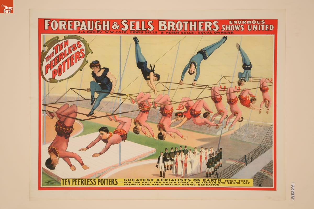 Circus Poster, Forepaugh & Sells Brothers Circus Presents "The Ten Peerless Potters, the Greatest Aerialists on Earth," 1901