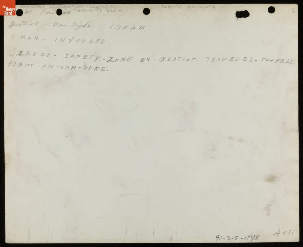 THF211392 / Damaged Car Following a Traffic Accident in Pontiac, Michigan, 1942-1945