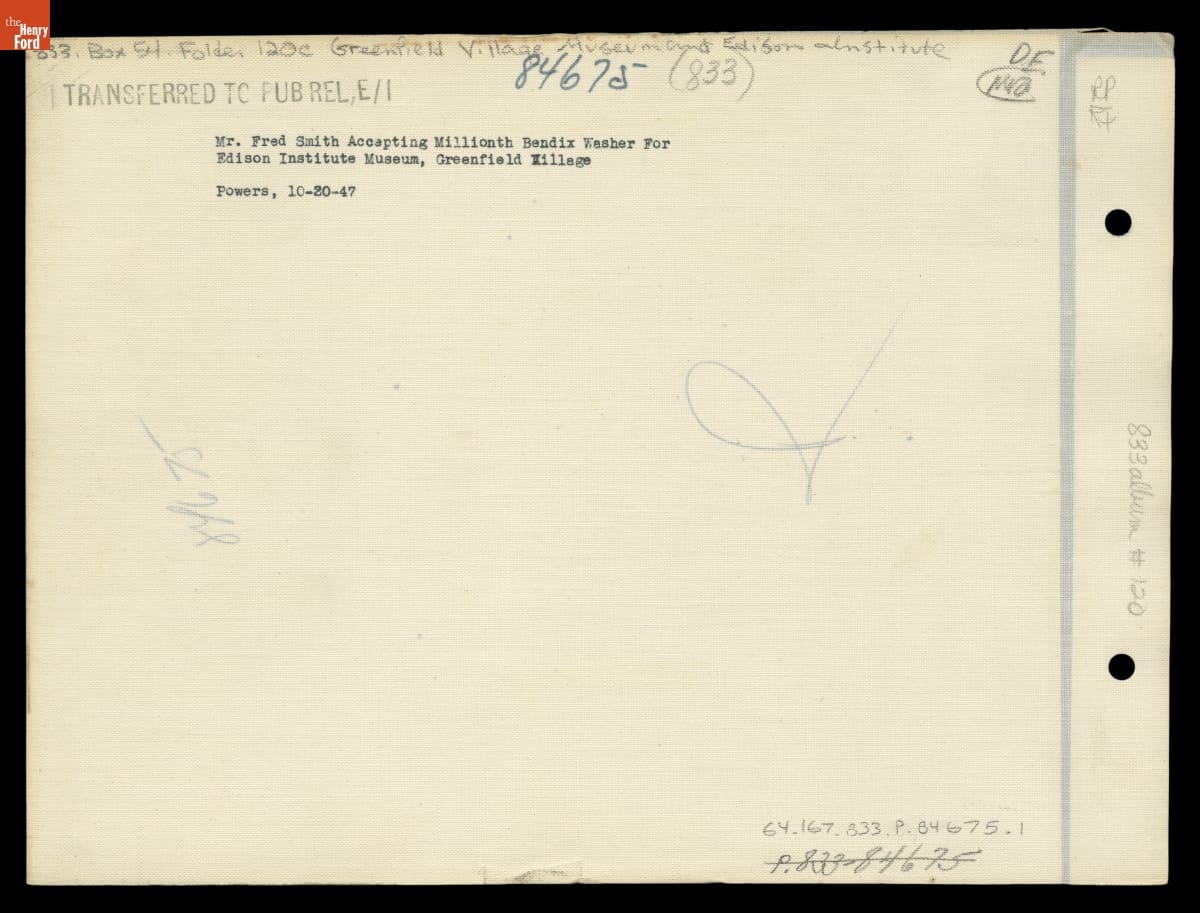 Donation of the Millionth Bendix Washing Machine Manufactured to Henry Ford Museum, October 1947