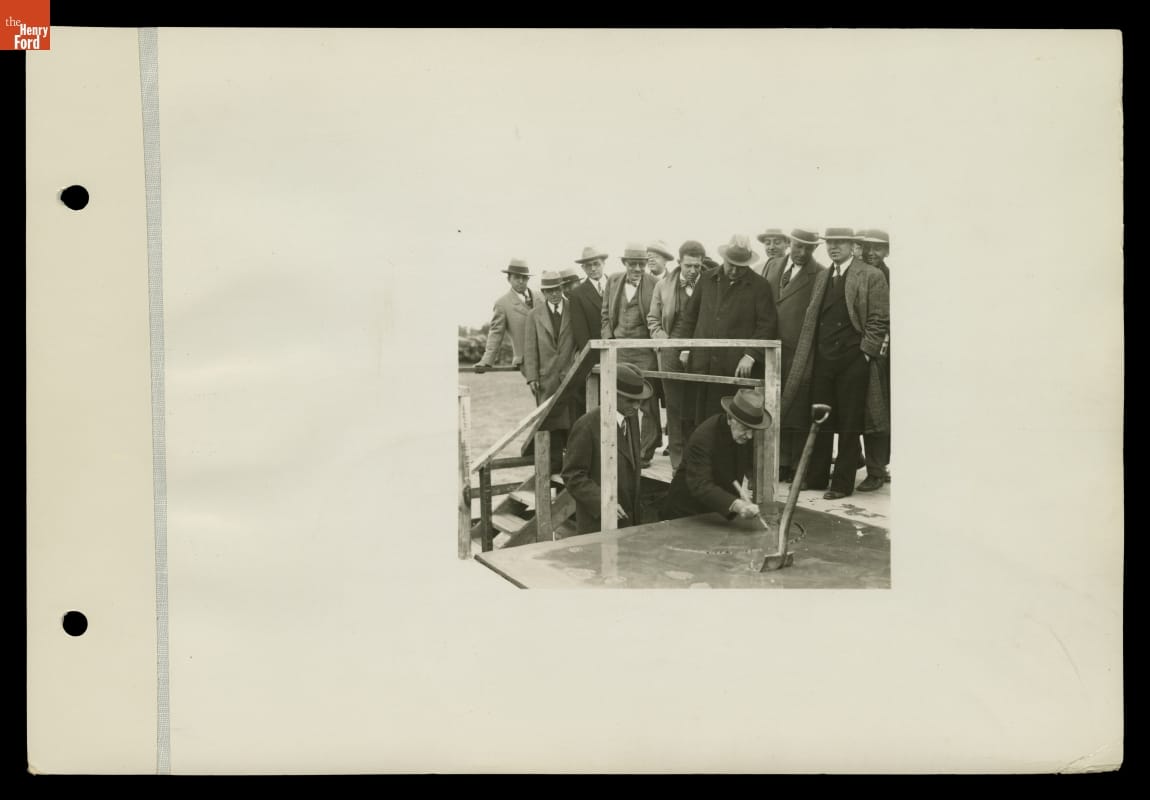 Henry Ford Watching Thomas Edison Sign Edison Institute Cornerstone, September 27, 1928