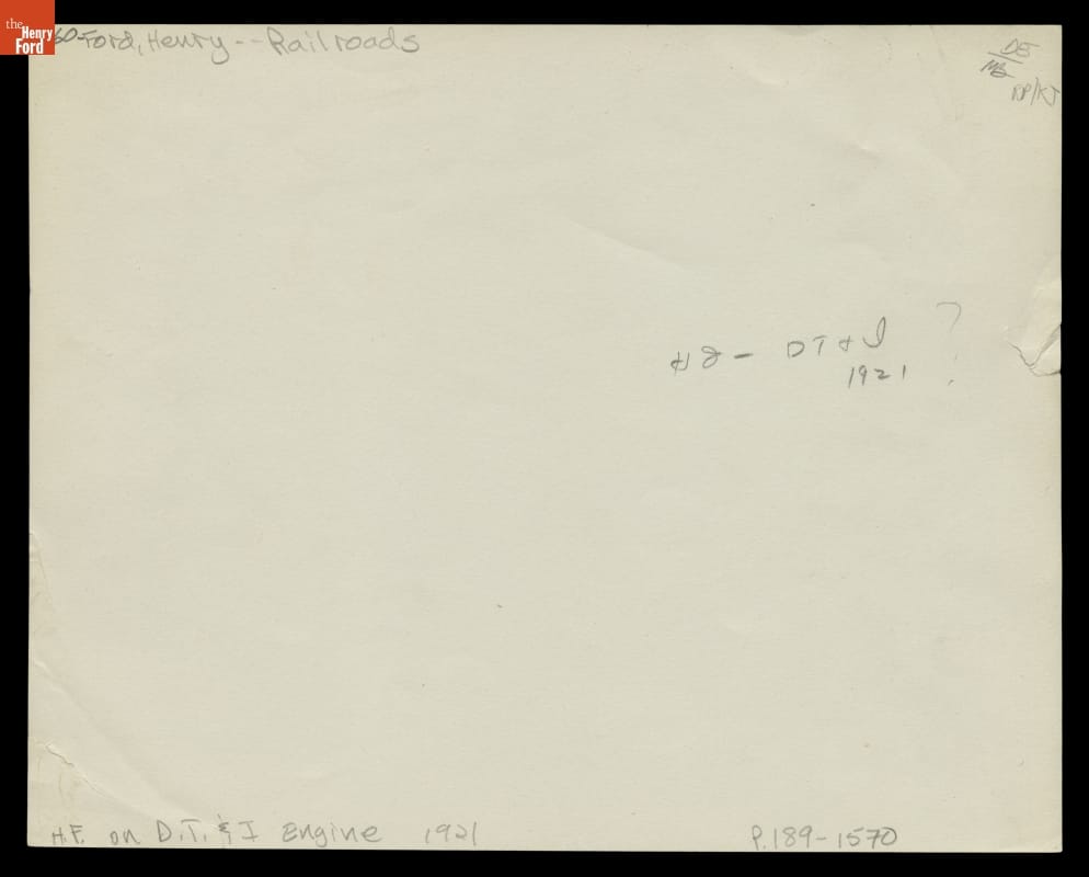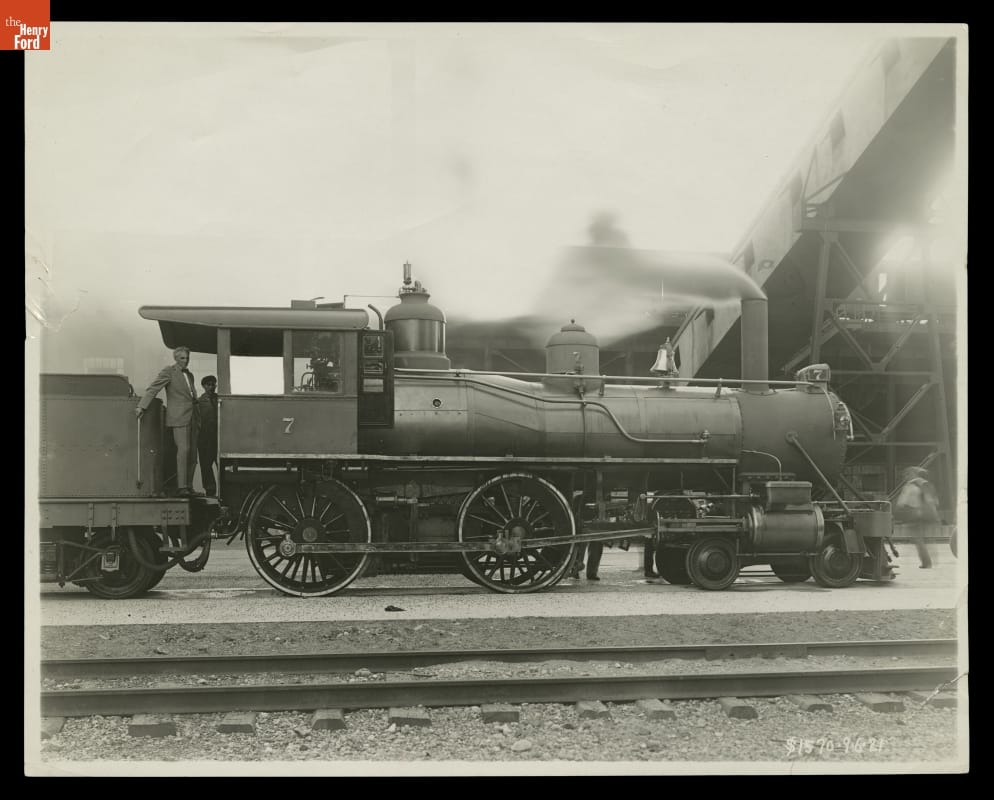 Henry Ford aboard the Detroit, Toledo & Ironton Railroad #7 Locomotive at Ford Rouge Plant, 1921