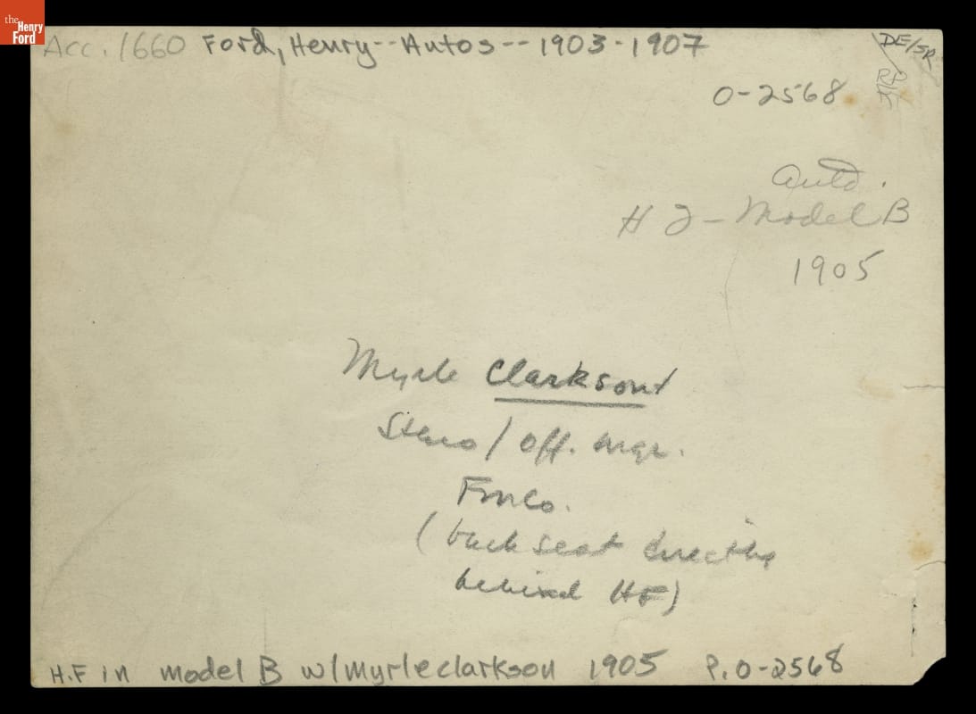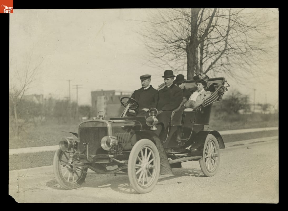 Henry Ford, Myrle Clarkson and Others Riding in a 1904 Ford Model B Car