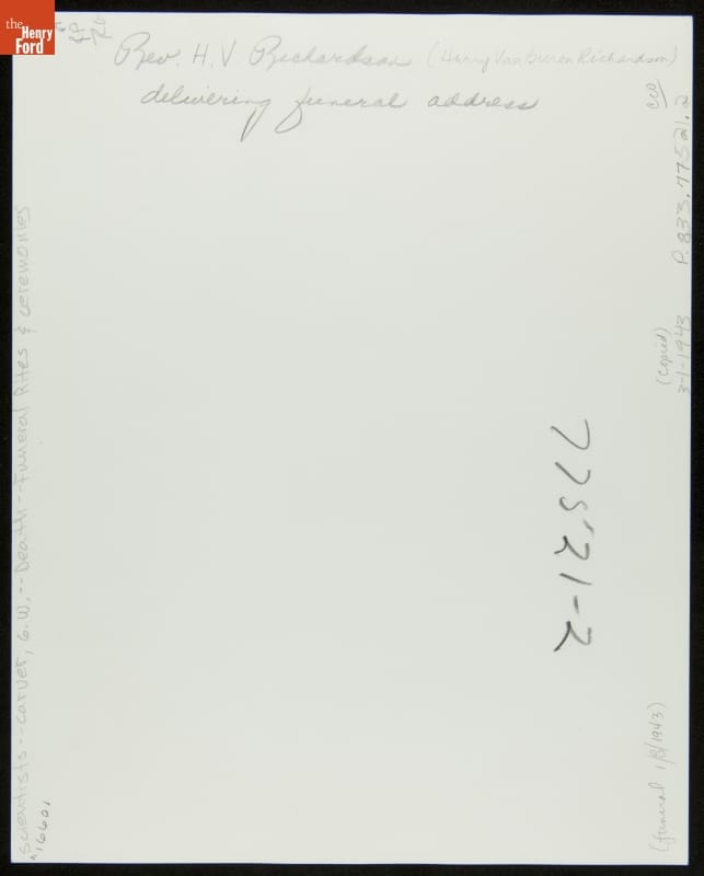 George Washington Carver's funeral services were held at the chapel of the Tuskegee Institute in Tuskegee, Alabama, where the celebrated agricultural scientist had taught since 1896. Carver's death in 1943 provoked an outpouring of tributes to his remarkable life and work.