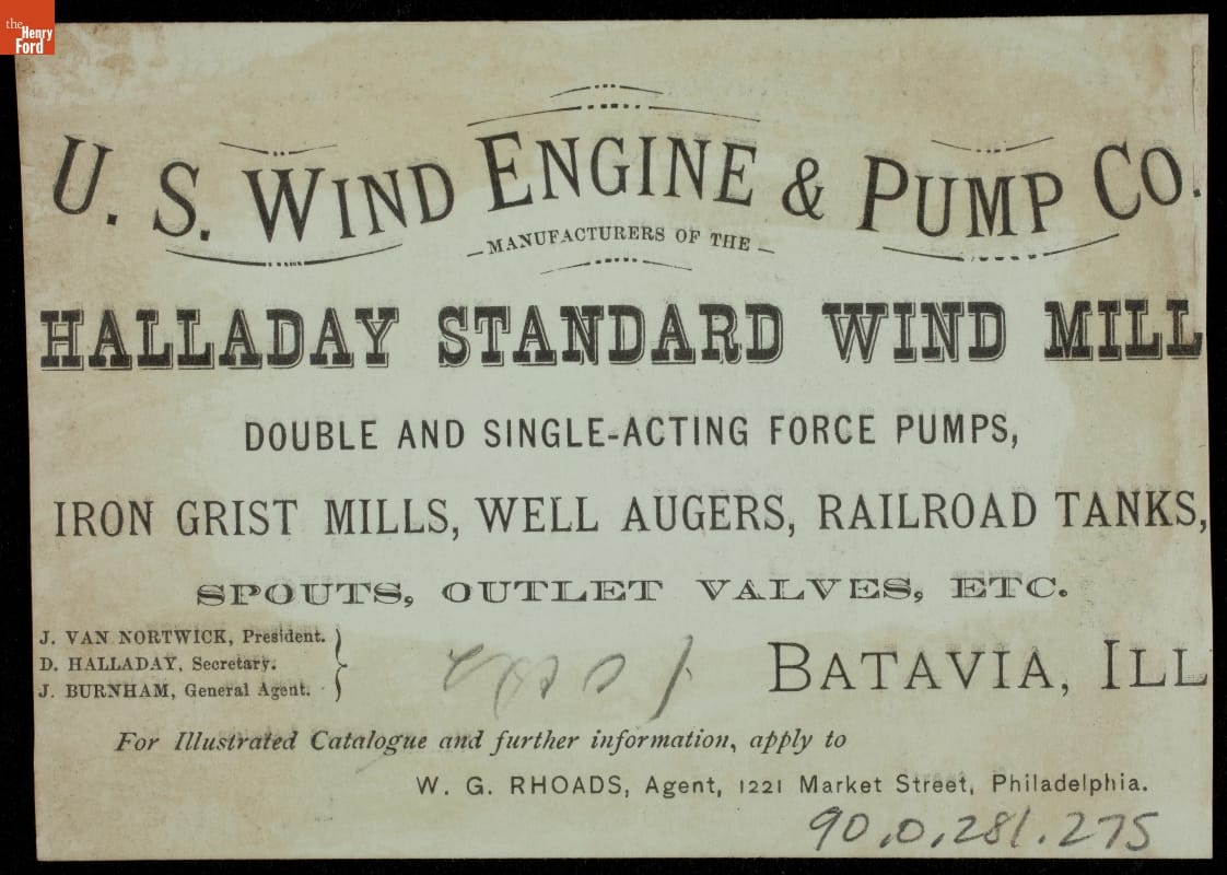 Trade Card for Halladay Windmills, U.S. Wind Engine & Pump Co., 1870-1900