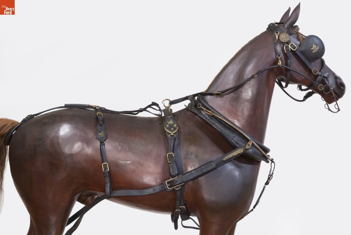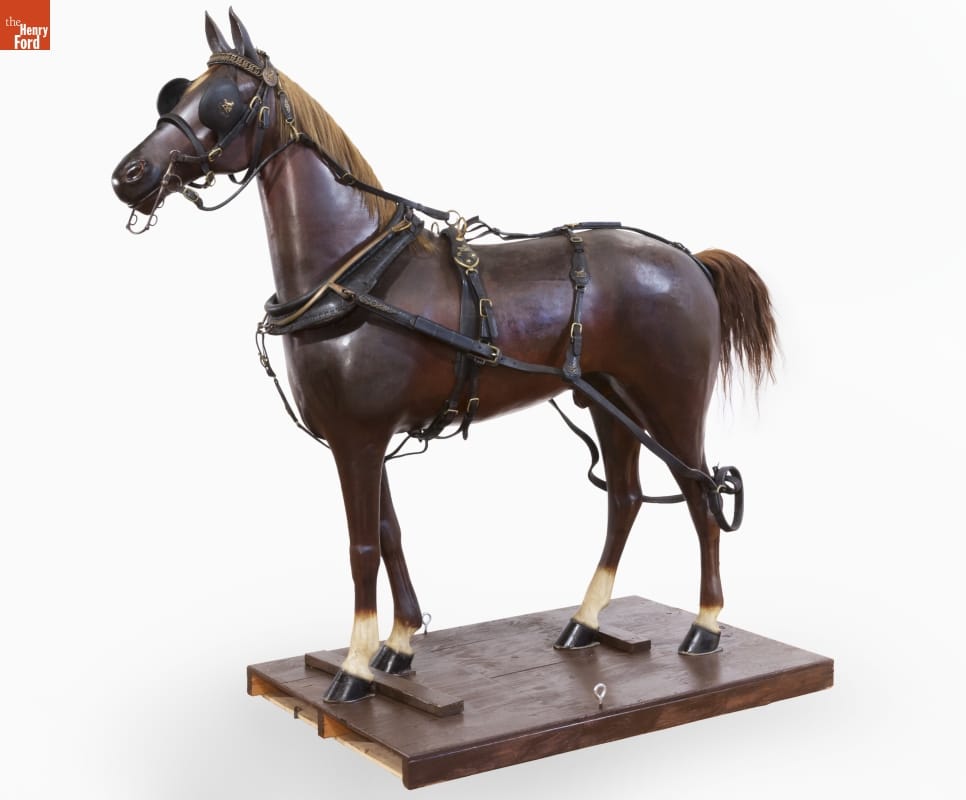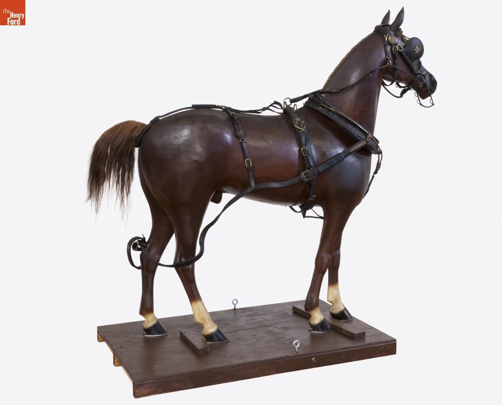 Horses were an important part of transportation until the car took over -- and buying the right equipment was essential to horse owners. Late 19th and early 20th century shops that sold saddles, harness, and tack used horse display mannequins, much like this one, to encourage horse owners to purchase the equipment from their stores.