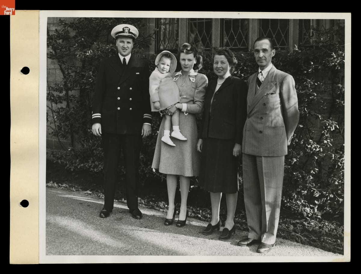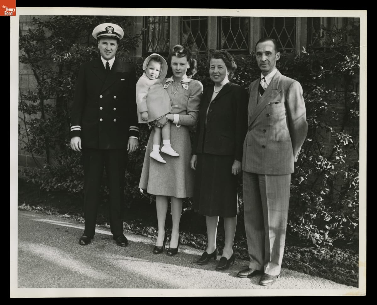 Edsel and Eleanor Ford posed with their daughter-in-law Anne, their granddaughter Charlotte, and their son Henry Ford II in 1943. When Edsel Ford passed away that May, Henry Ford II was released from the Navy so that he could return to Detroit to prepare for his eventual appointment to Ford Motor Company's presidency.
