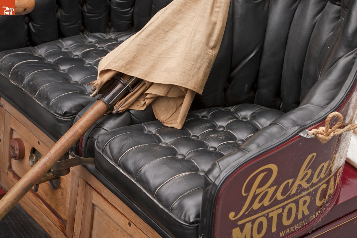 Outside of seats, in yellow: Packard / MOTOR CAR / WARREN, OHIO