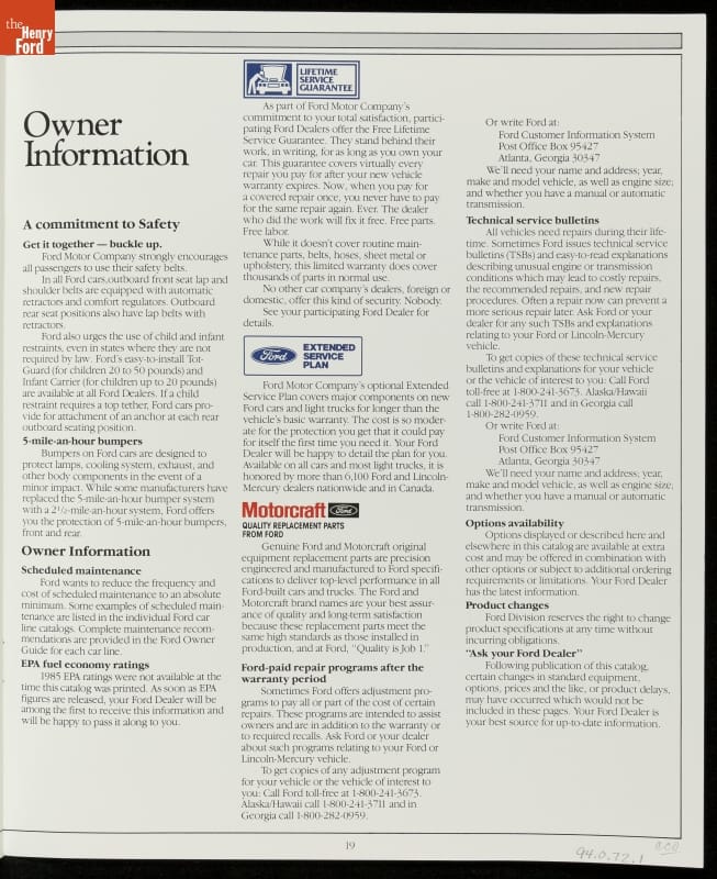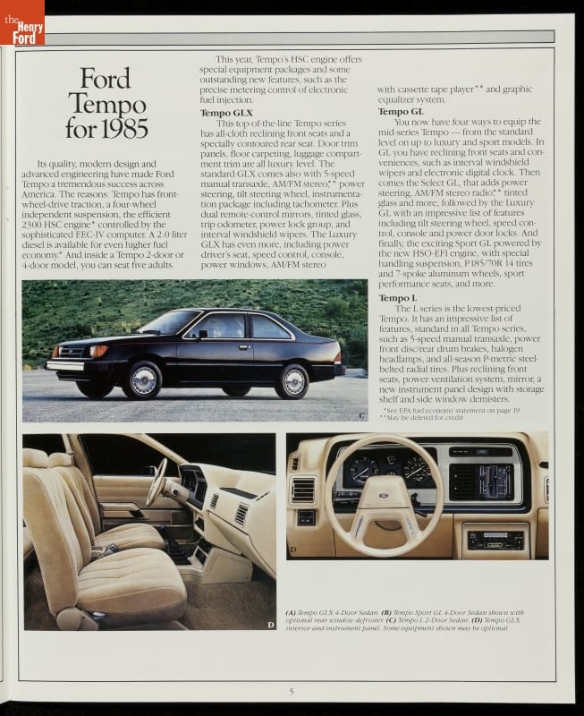 Sales Brochure for 1985 Ford Cars