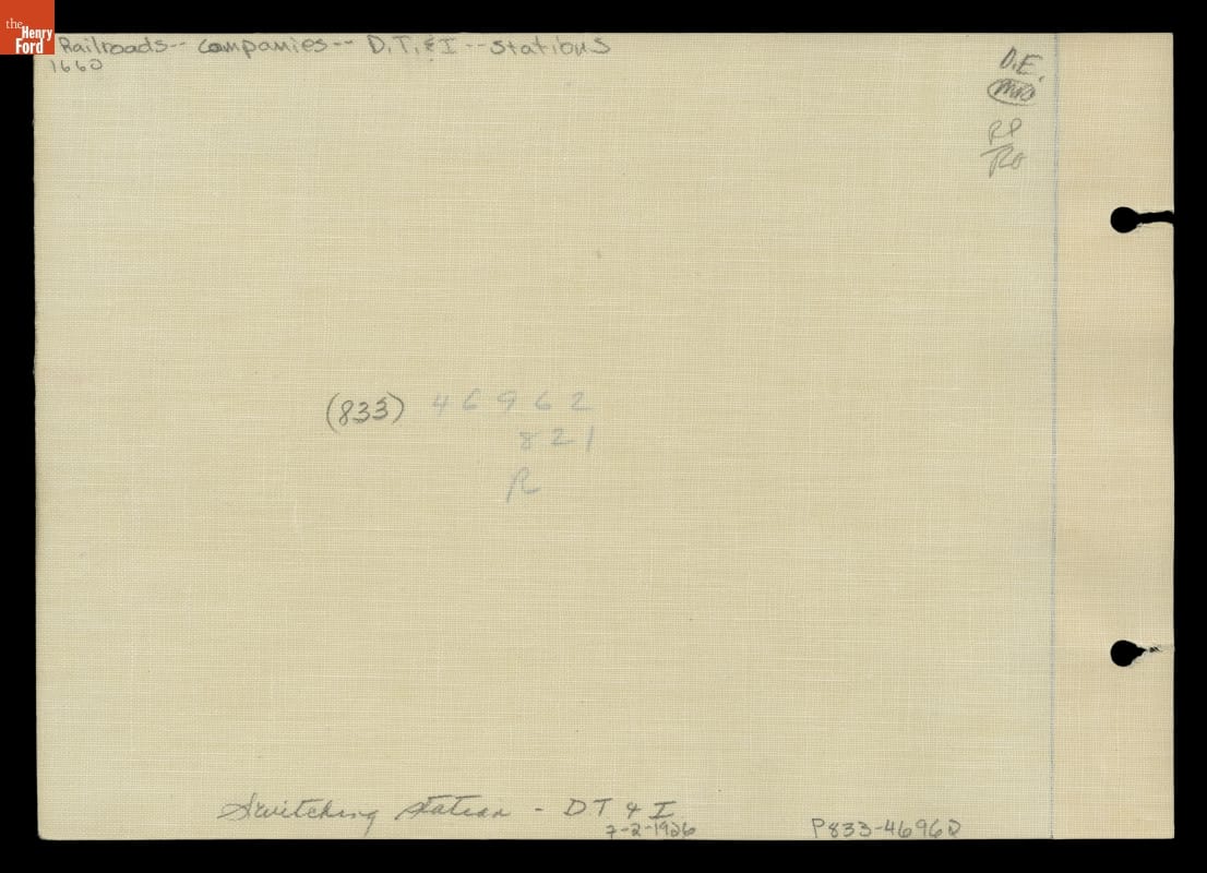 The operator stationed in this Detroit, Toledo & Ironton Railroad building would have kept busy. This interlocking tower protected the crossing of a DT&I branch with the Detroit United Railway's streetcar line on Jefferson Avenue. The tower operator likely was responsible for activating the railroad crossing gates as well.
