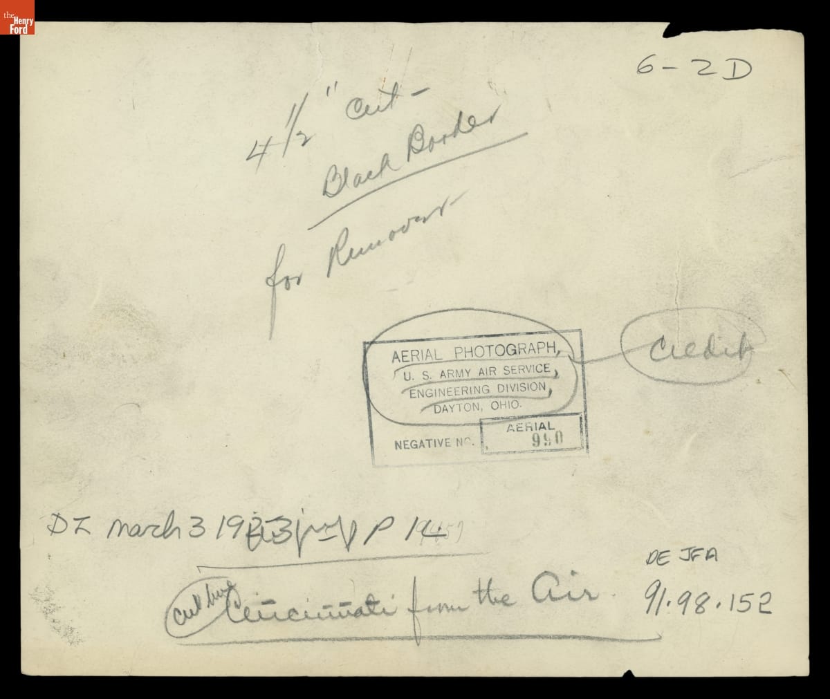 Military aerial reconnaissance during World War I accelerated the evolution of domestic aerial photography after the war. During the 1920s, aerial images like this one taken over Cincinnati by the U.S. Army Air Service helped document population shifts and environmental changes. They also informed urban planning, agricultural practices, and engineering projects.
