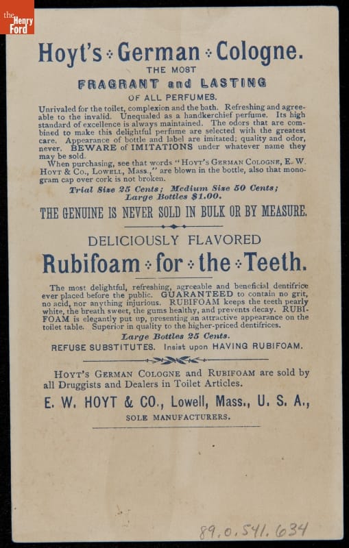 Trade Card for Hoyt's German Cologne and Rubifoam, 1880-1900