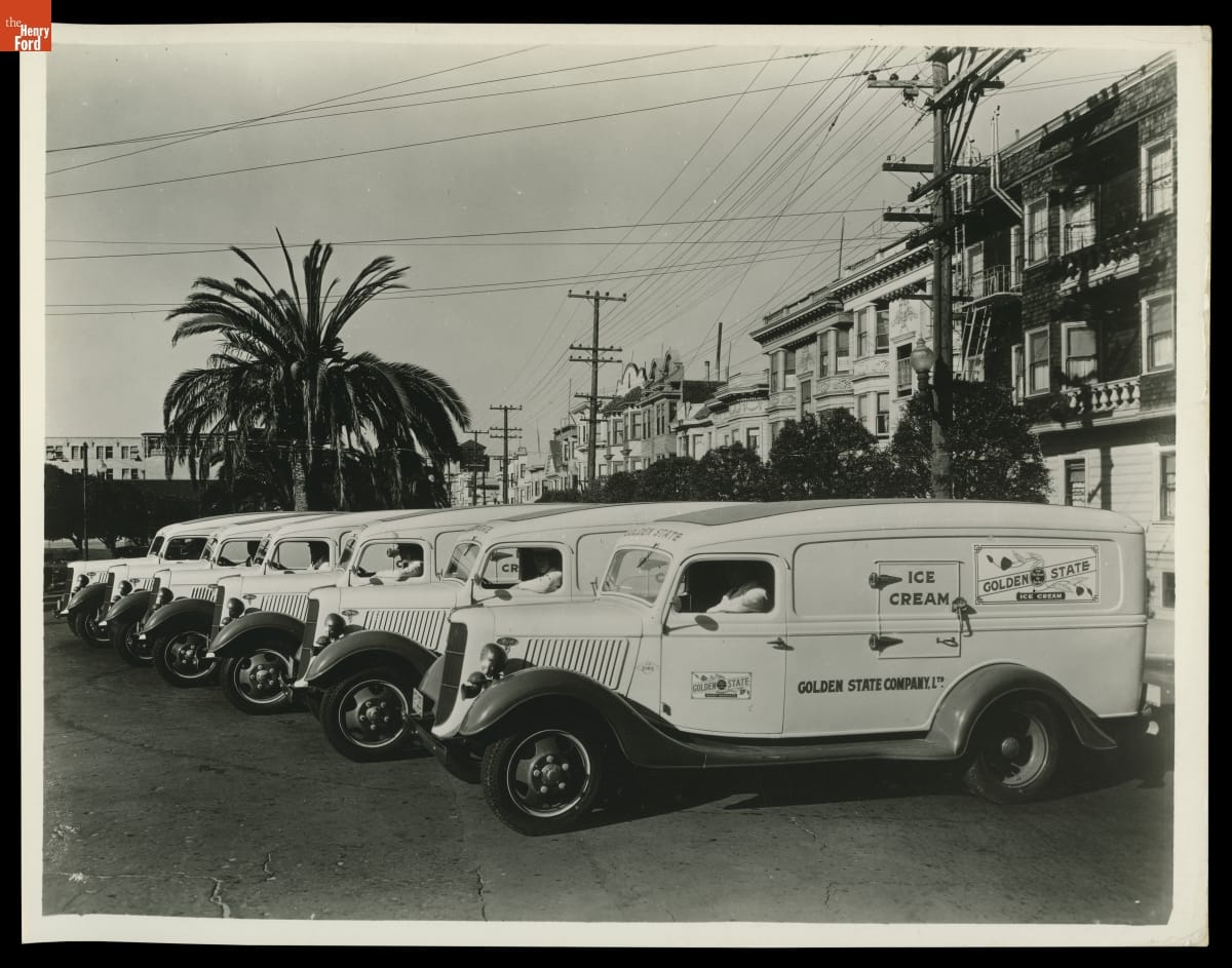 Ford V-8 Refrigerator Trucks Used by Golden State Company, Ltd., Los Angeles, California, April 1936