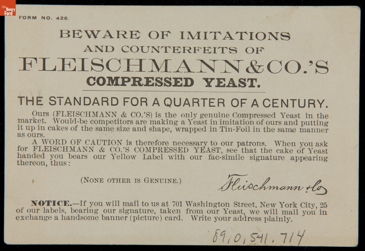 Trade Card for Fleischmann & Company, 1880-1900